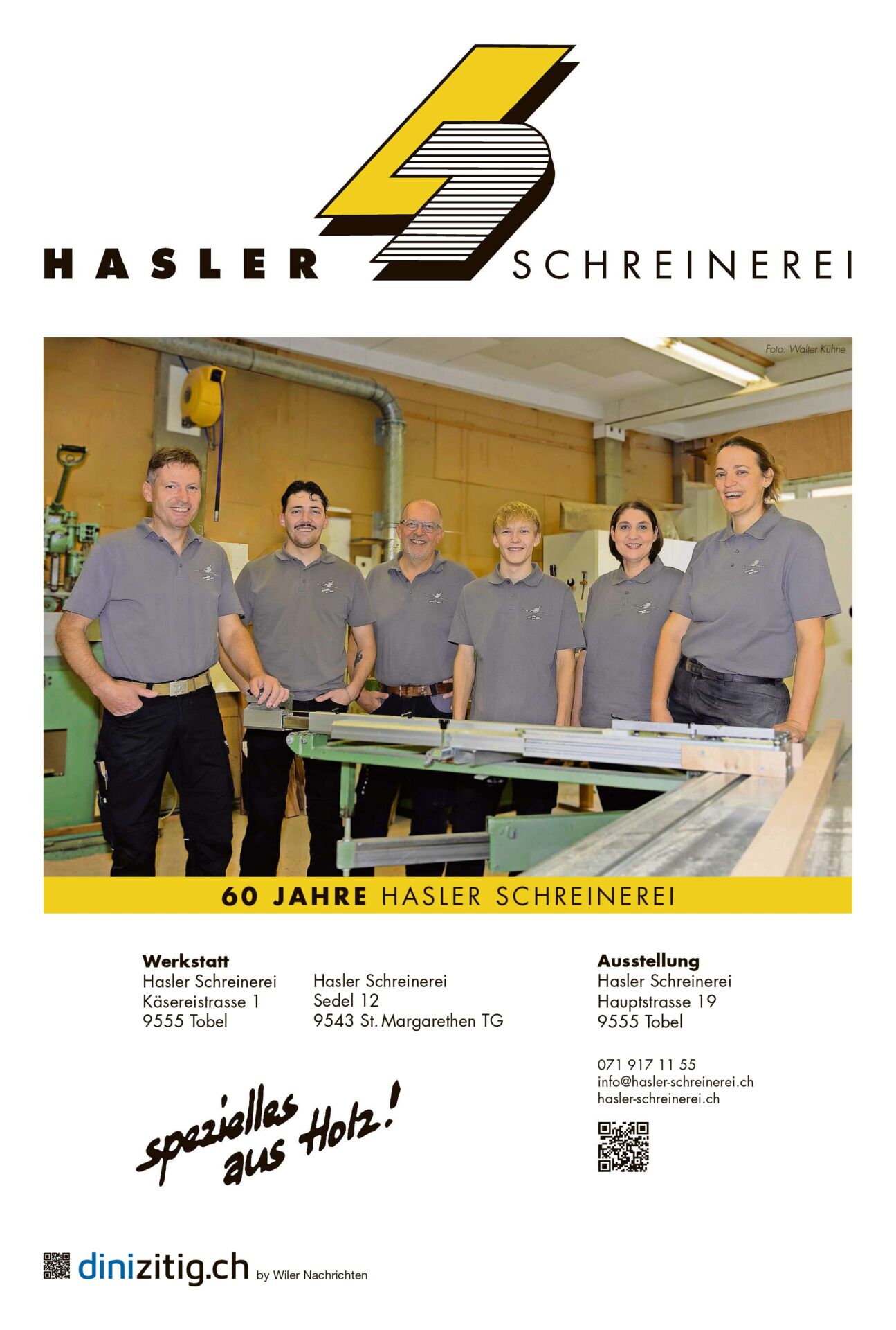 Die breite Produktpalette der Hasler Schreinerei liest sich wie ein repräsentativer Querschnitt durch das Schreinerhandwerk. Die Arbeiten, die über die vergangenen 60 Jahre die Werkstatt in Tobel verlassen haben, sind Ausdruck von leidenschaftlichem Engagement und hohem Qualitätsbewusstsein. Sie verbinden Berufsstolz mit Kreativität und Leistungsbereitschaft.